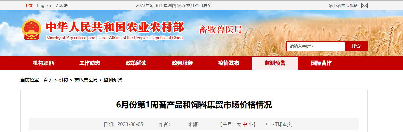 農(nóng)業(yè)農(nóng)村部:2023年第25周瘦肉型白條豬肉出廠價格監(jiān)測周報...