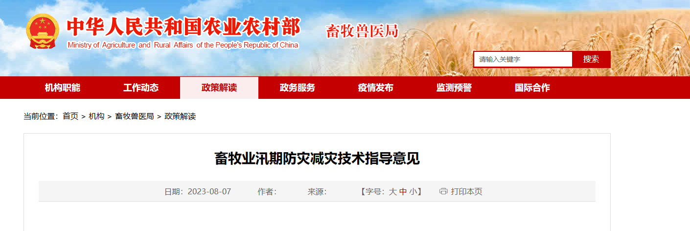 為進一步指導各地應對強降雨、臺風、洪澇等災害影響,最大程度降低災害損失,穩(wěn)定畜牧業(yè)生產(chǎn),在前期發(fā)布《雨季養(yǎng)殖場戶非洲豬瘟防控技術要點》《汛期動物疫病防控技術指導意見》的基礎上,農(nóng)業(yè)農(nóng)村部近日又發(fā)布《畜...